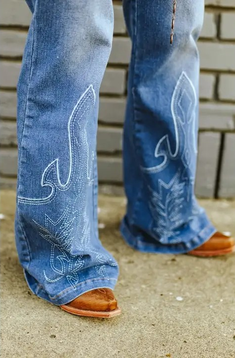 Stone Wash High Rise Boot Stitch Embroidered Flare Jeans
