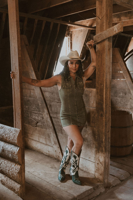 The Macy Black Suede Dress W Camel Cuff Yokes