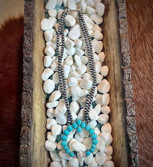 Double Lariat Turquoise Necklace w/ Copper Feather
