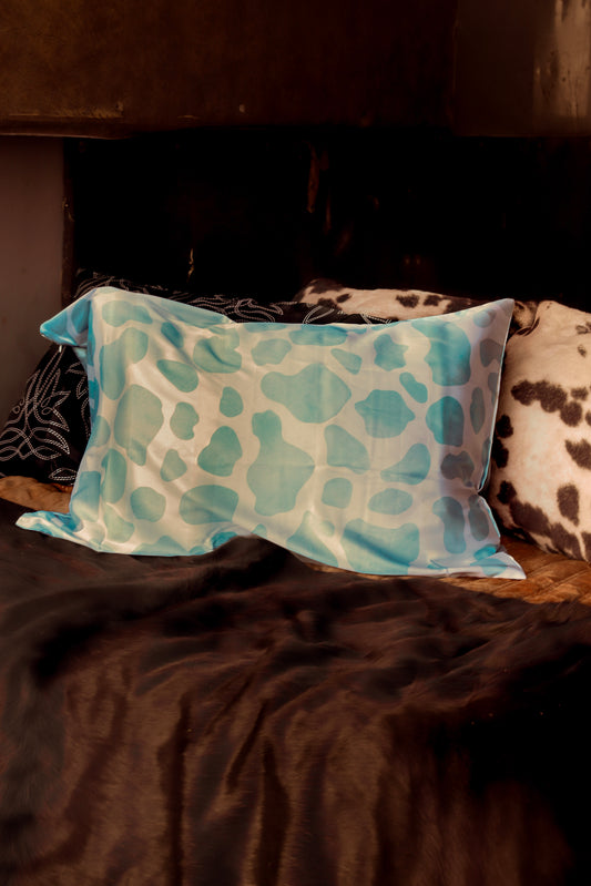 Blue Cow Print Satin Pillow Case