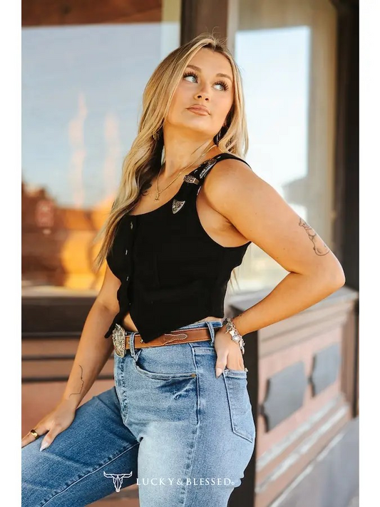 Darlin', Western Cowgirl Micro-Ribbed Cropped Tank