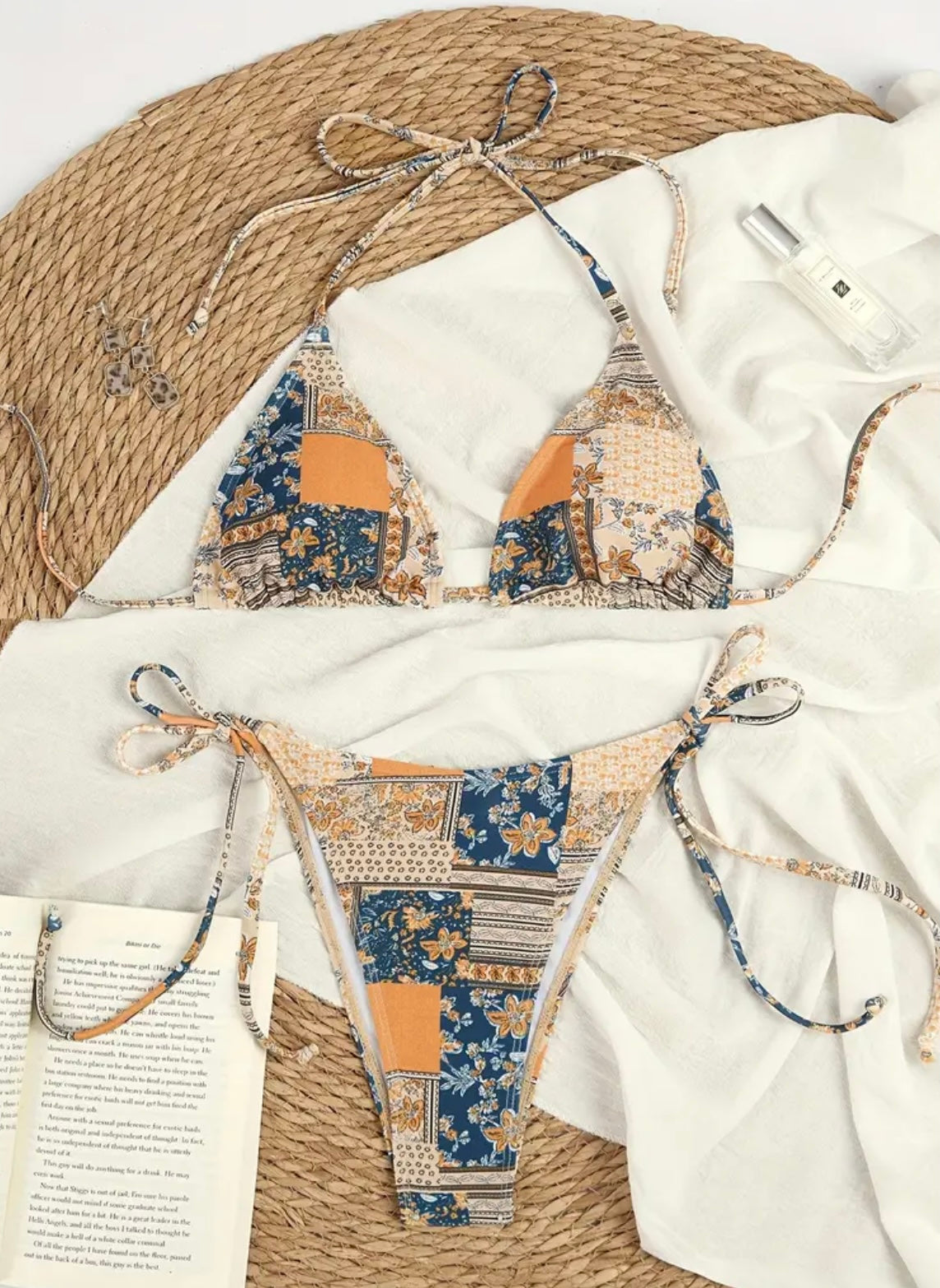 Upgrade your beach look with our Southern Patchwork Bikini. Featuring a unique patchwork design, this bikini is perfect for those who want to stand out. Made with high-quality materials, it provides both comfort and style for your next beach outing. Elevate your swimwear game with our Southern Patchwork Bikini.